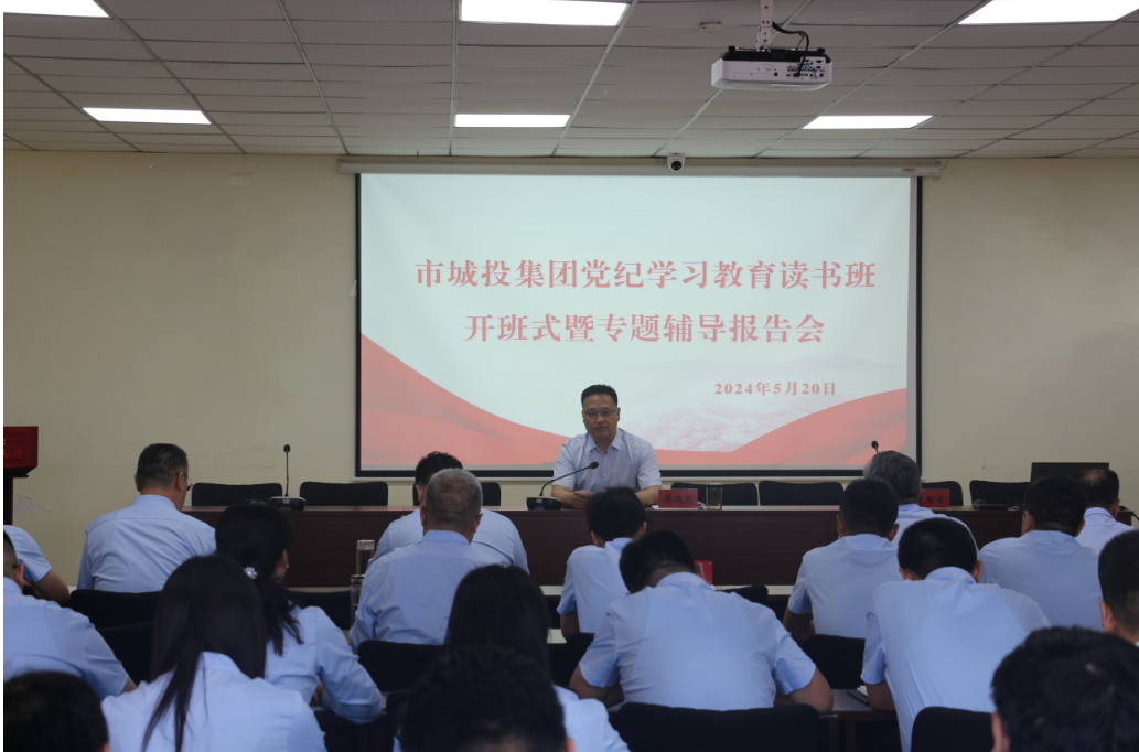 5月20日,市城投集團舉行黨紀(jì)學(xué)習(xí)教育讀書班開班式暨專題輔導(dǎo)報告會,集團黨委書記、董事長宋鴻杰在開班式上作輔導(dǎo)報告。集團領(lǐng)導(dǎo)班子成員,各部室司中層副職及以上管理人員,全體黨員,恒通熱力公司、建設(shè)工程公司班子成員及各支部書記參加會議。