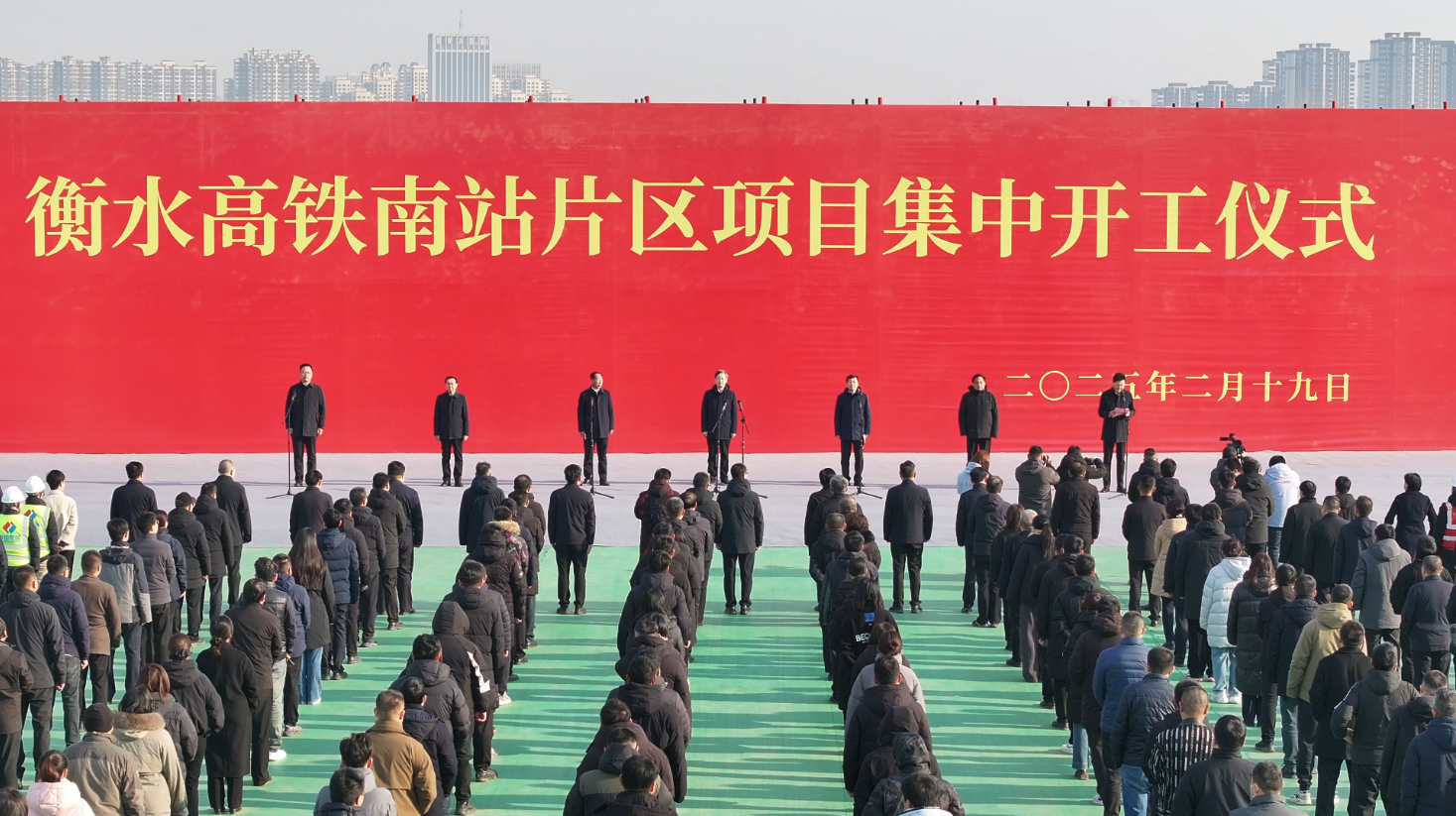 2月19日,全市一季度重點項目集中開工(主會場)活動在市城投集團承建的衡水高鐵南站片區(qū)項目現(xiàn)場隆重舉行。市委書記吳曉華出席集中開工儀式并宣布項目開工。市長董曉航主持。市人大常委會主任王金剛,市政協(xié)主席鈕興輝出席。市委常委、常務副市長張學鋒通報全市一季度開工項目情況。中電建建筑集團有限公司總經(jīng)理劉慶,集團黨委書記、董事長宋鴻杰就高鐵南站片區(qū)項目建設作表態(tài)發(fā)言。