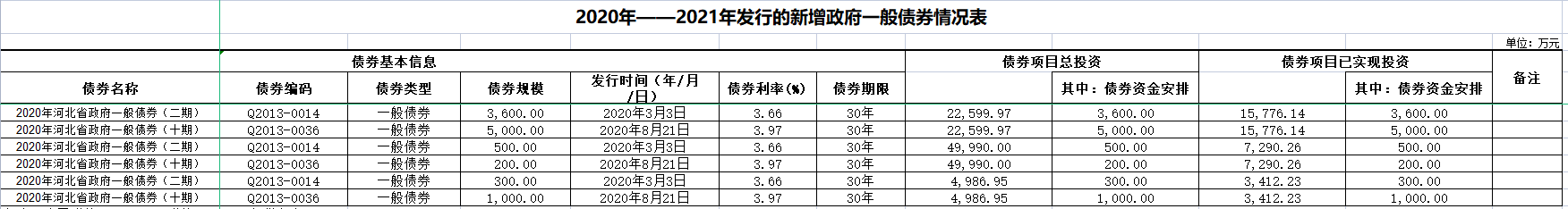 2020年—2021年發(fā)行的新增政府一般債券信息公開
